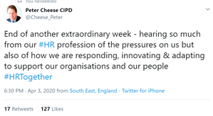 In fact this Community thread has been a very important barometer for the CIPD team in understanding what is needed to try to help support our members. Thank you for using the Community and continuing to reach out - you are not alone! I thought you might also like to see this tweet from Peter Cheese, CIPD CEO last Friday: